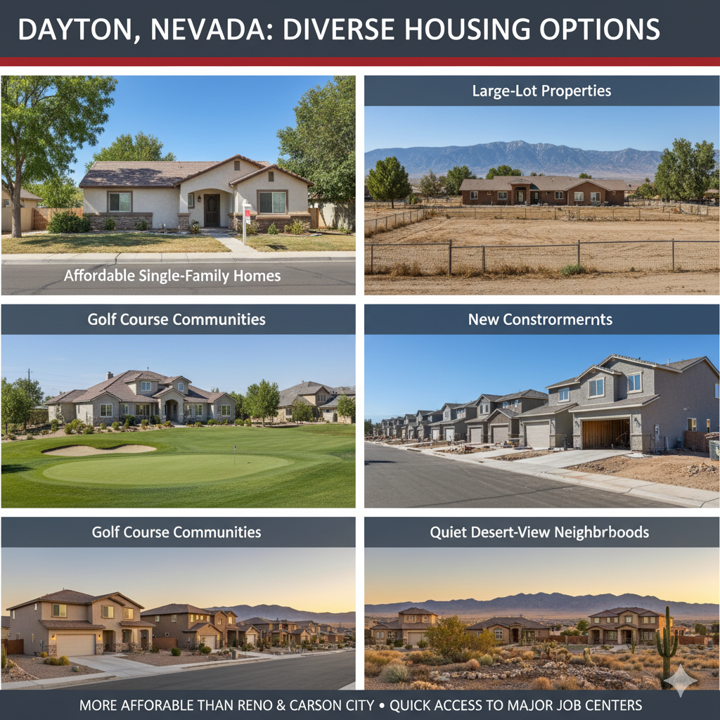 Dayton is one of Nevada’s oldest and fastest-growing communities, located just 12 miles east of Carson City along Highway 50. It offers a blend of quiet neighborhoods, scenic desert views, and convenient access to major job centers in Northern Nevada.