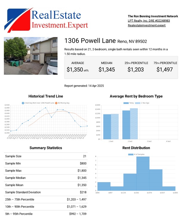 Explore the dynamic investment opportunities in Northern Nevada. This region includes key cities such as Reno, Sparks, Fernley, Carson City, and Dayton — all offering strong rental demand and steady market growth.